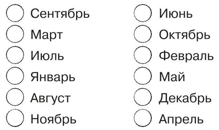 Окружающий мир 1 класс рабочая тетрадь 2 часть страница 8 3. К каким временам года относятся эти месяцы? Придумайте значок для каждого времени года. Нарисуйте его в кружках рядом с названиями месяцев. Ответ: 4. С помощью рисунка-схемы в учебнике или самостоятельно пронумеруй названия месяцев в правильной последовательности. Начни с января. Попроси соседа по парте проверить твою работу. Ответ: |