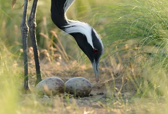 Верность партнёру степные журавли сохраняют на всю жизнь. Гнездо