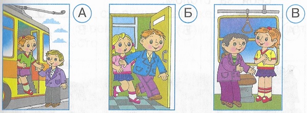 Тесты по окружающему миру 2 класс Правила вежливости 157. "Здравствуйте!" - это приветствие. А что такое "До свидания"? А Извинение Б Просьба В Прощание Г Благодарность Ответ: В 158. Каким словом нельзя заменить слово "Здравствуйте!"? А Пока Б Привет В Добрый день Г Доброе утро Ответ: А 159. К словам благодарности НЕ относится: А спасибо Б благодарю В извините Ответ: В 160. Кто из мальчиков поступает плохо? Ответ: Б |